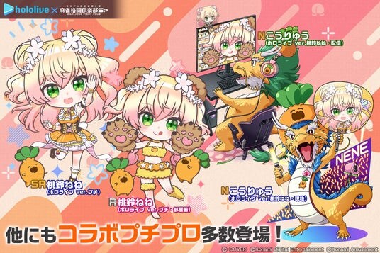 「ホロライブ麻雀コラボリレー」は、ホロライブタレントがコラボのバトンを繋いでいくゲーム内イベントです。第5弾となる今回のコラボリレーでは、人気タレント『桃鈴ねね』が新規描きおろしイラストと300種類以上の録りおろしボイスを収録したプチプロとしてゲーム内に登場します。