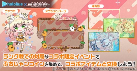 ミニゲーム「ぷちじゃン!」や各種対局で条件を満たし勝利することで獲得できる「ぷちじゃンコイン」を一定数集めることで、コラボ仕様の卓背景などの対局を彩るさまざまなアレンジアイテムのほか、招来では獲得できない「桃鈴ねねプチプロ」のプチバージョンも獲得できます。