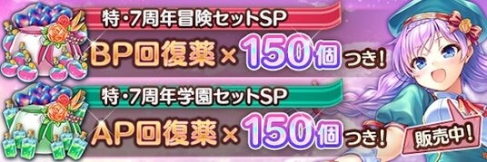 フレアライトとAP回復薬がセットになった、2種類の『特・7周年学園セット』の4種類のお得なセットが登場しました!