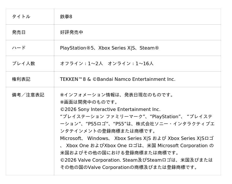 日頃『鉄拳8』をプレイしている方だけでなく、ひさしぶりに復帰する方や、これからプレイを始める方も含め、すべてのプレイヤーの皆さまがご参加いただけます。