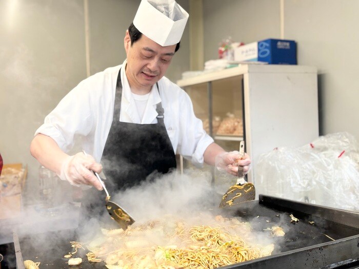 プリプリの海老や烏賊にシャキシャキのキャベツがたっぷりと入った「海鮮焼きそば」。焼きそばが焼きあがるソースの香りに誘われて…ビールやお酒との相性も抜群です。