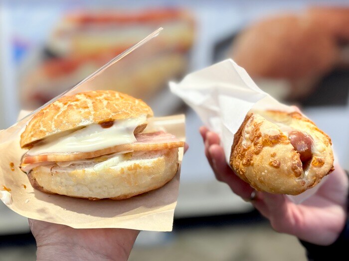 ぷりっとジューシーな粗びきソーセージに、濃厚なボロネーゼソースがたっぷりの「粗びきソーセージとボロネーゼのプレフ」。優しい甘さの淡路玉ねぎに、なめらかなチーズと香ばしいベーコンをサンドした「淡路玉ねぎのベーコンチーズバーガー」。