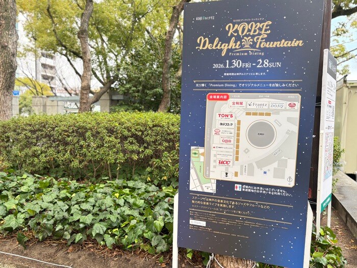 阪神・淡路大震災から、沢山の方へ希望の明かりとして復興のシンボルとなる「神戸ルミナリエ」。会場の東遊園地南側園地(花時計広場)にて、神戸・阪神間から食の魅力を発信する12の企業が集結する「KOBE ディライト・ファウンテン」が開催中です。幻想的な光のイルミネーションに包まれながら、神戸ならではの食べ歩きグルメをご紹介します。