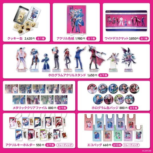 本商品は、カプコンの人気7タイトルより選出した9キャラクターを描き下ろした特別なイラストを使用した商品シリーズです。