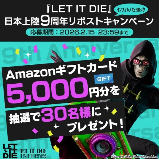 日本での『LET IT DIE』シリーズ販売開始から9周年を記念して、豪華景品が当たるキャンペーンを開催いたします。