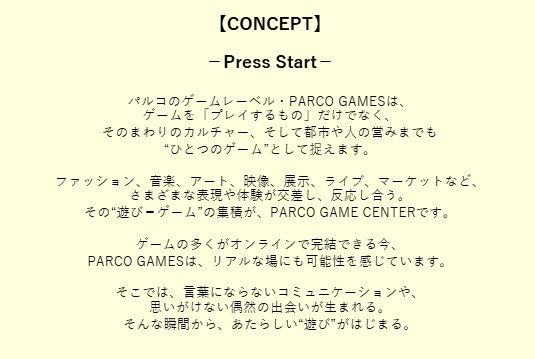 「PARCO GAME CENTER」空間イメージ・コンセプト