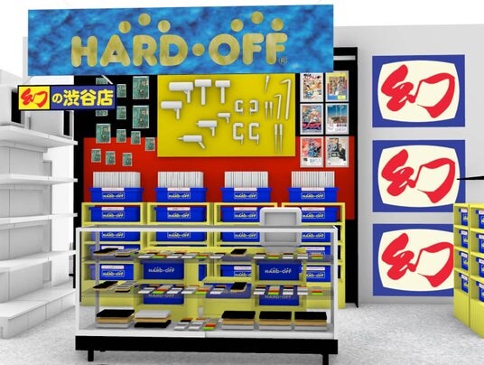 【HARD OFF 幻の渋谷店】限定オープン!HARD OFF公式アプリ内の「ハドフめぐり」にてチェックイン登録も可能です。ゲームやカメラ、レトロを感じるリユース品のほか、HARD OFFと言えば!の「青箱」を会場でも販売!