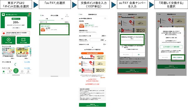 ※東京ポイント1pt=au PAY 残高1円として交換できます。