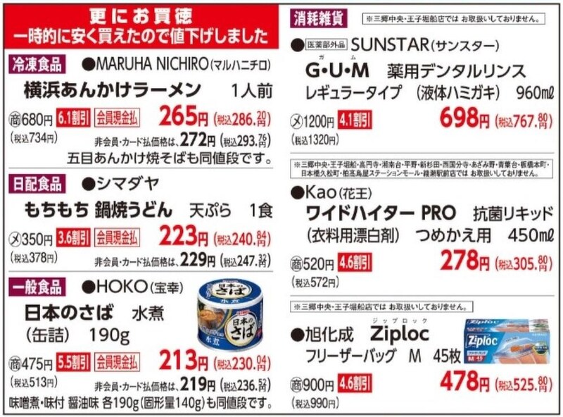 表示価格はオーケーの会員が現金払いで支払いした場合の価格です(以下同)。非会員・カード払いの場合は、食料品の価格が異なります。
