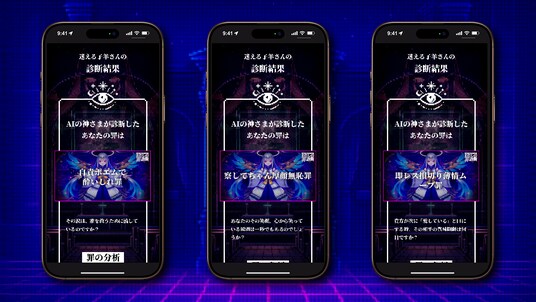 AIによる診断結果表示:AIが用意した16,000通りの診断ルートの中から、あなたの罪を出力