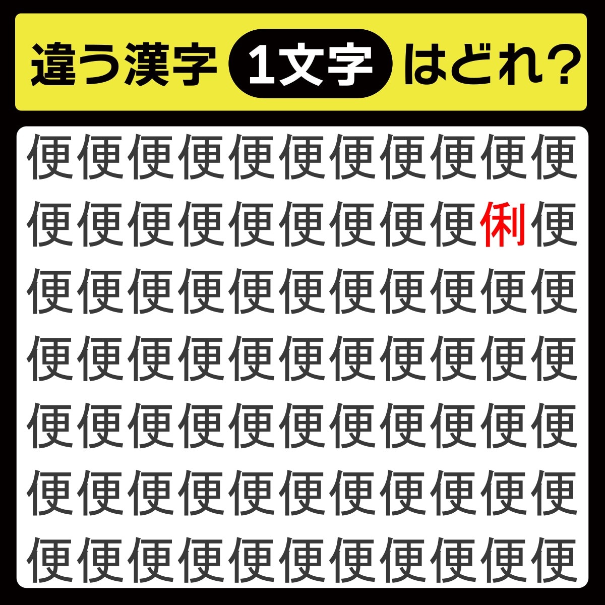違う漢字は、上から2行目、右から2番目の文字でした!
