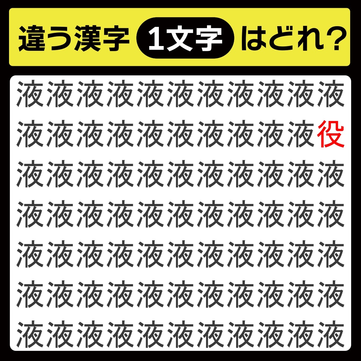 毎日配信中「毎日脳トレ」の時間です! 本日のクイズは「漢字のまちがい探し」に挑戦♪ 同じ漢字が並んでいるように見えますが、実は1つだけ違う漢字が……。よ~く探してみてください!