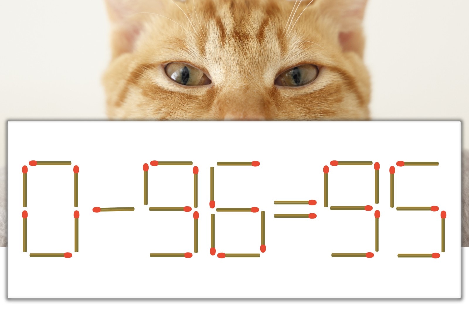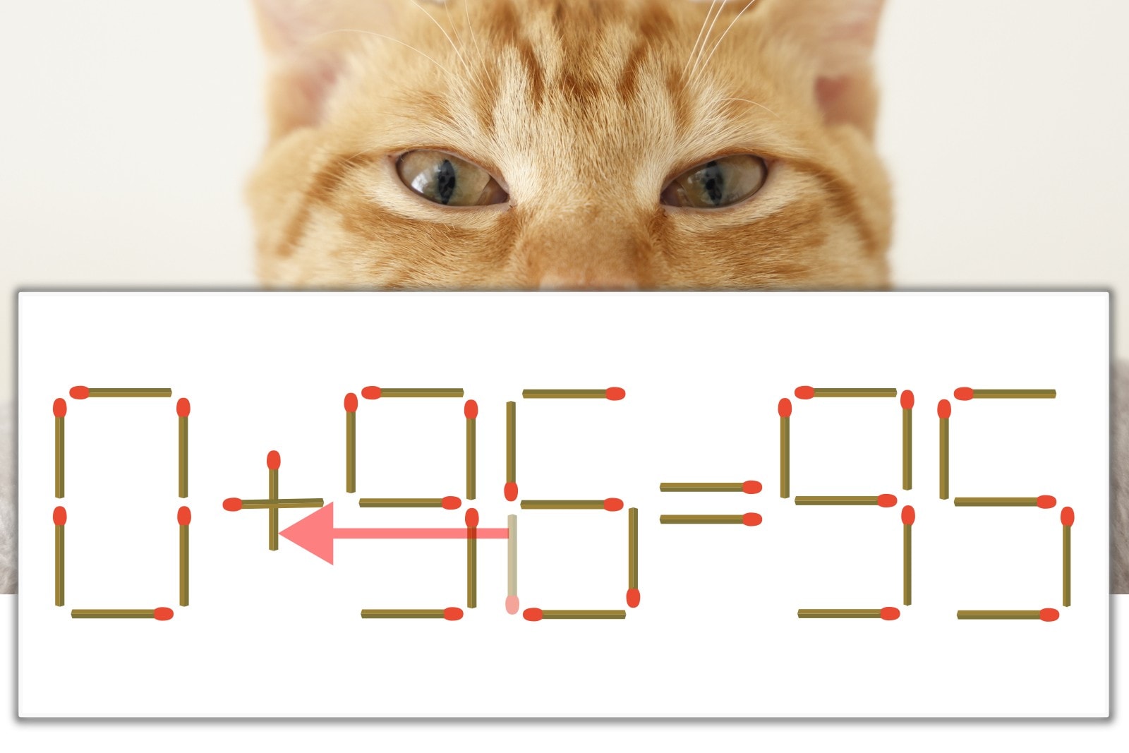 「6」を別の数字に変化させると答えが導き出せます。「6」のマッチ棒を1本移動して、「-」を「+」にしてみましょう。すると、「0+95=95」が成立します。
