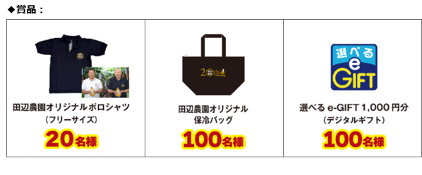 キャンぺーンサイト https://tanabefarm-20th.jp/ より応募