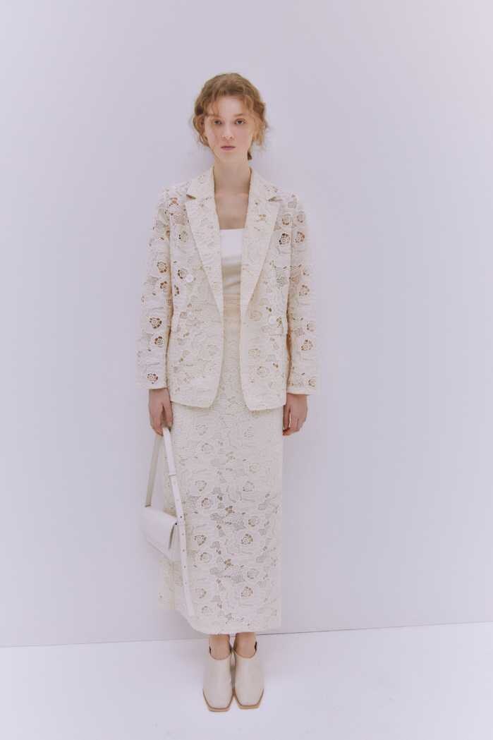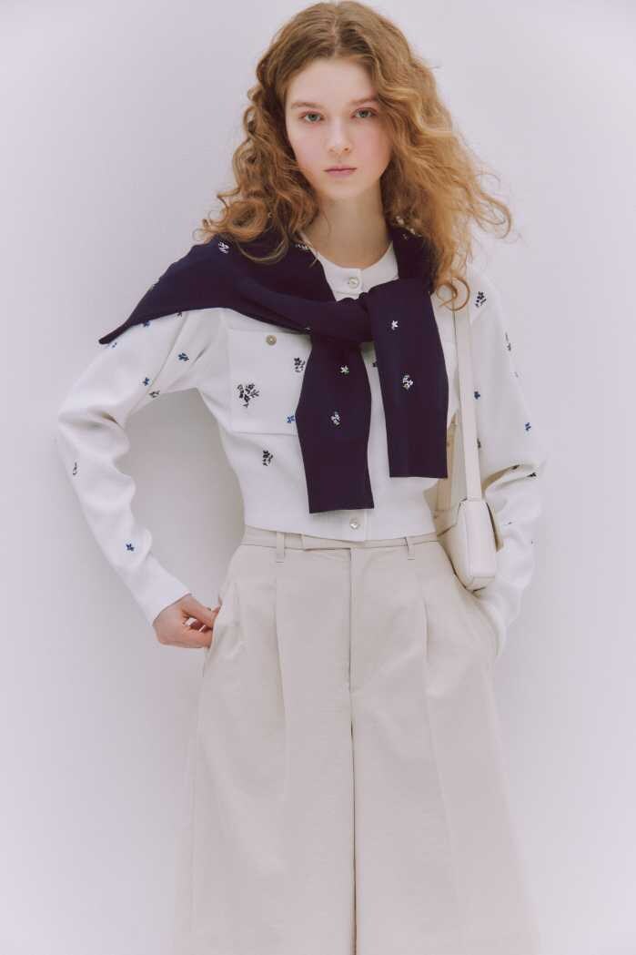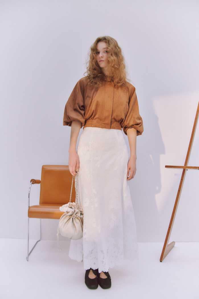 KNIT9,900円とSKIRT12,100円の軽やかなバランスや、BLOUSON17,600円とSKIRT15,400円の組み合わせも、春らしい透明感を演出します。