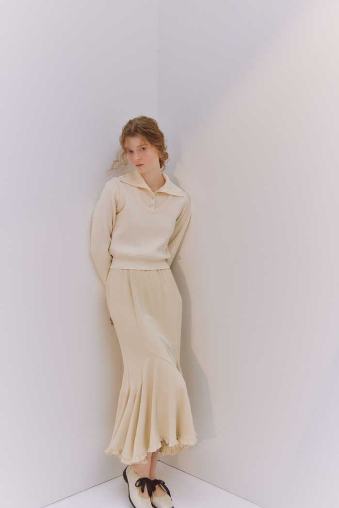 CARDIGAN13,200円、ONE-PIECE19,800円の組み合わせをはじめ、JACKET24,200円、CAMISOLE4,950円、SKIRT16,500円など、奥行きのあるスタイリングを提案します。