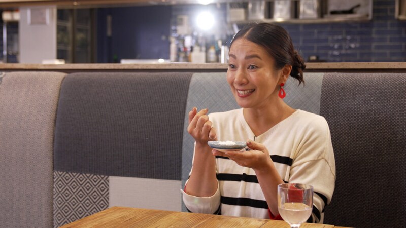 レモンパスタに使われている塩をつまんで口に運んだ三船さんは、その旨みに感動! 淡路島の洲本市で、島の海水から塩を手作りしているのは、塩職人の末澤さん。「普通を極めたようなお塩を作りたい。素材と一緒になって素材が引き立つような名脇役を」と話す。