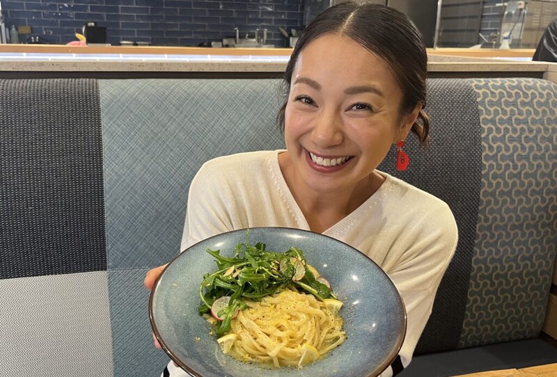 レモンパスタをめぐる物語を知った三船さんは、「希望が生まれますよね」「梅田の街中で淡路島の広大な自然を感じられるのが嬉しいな」と満面の笑顔だった。