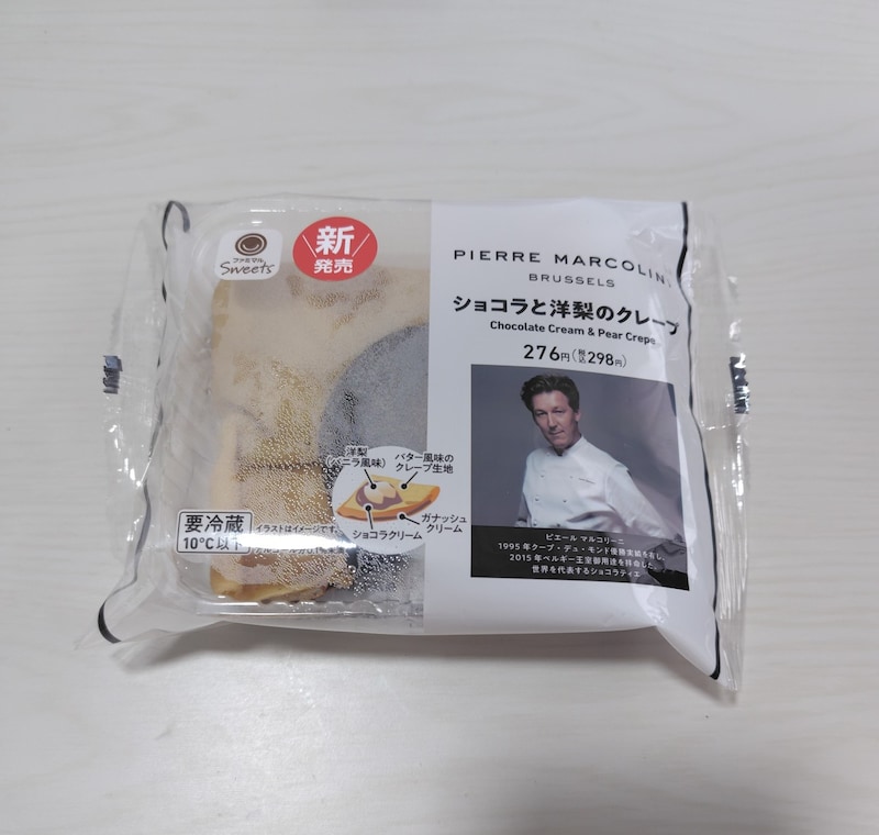 1月27日にファミリーマートから新発売された「ピエールマルコリーニ監修 ショコラと洋梨のクレープ」をご紹介します。