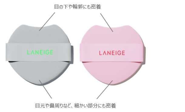 両タイプ共通のデュアルチップハートパフは、広範囲から細部まで簡単にカバー可能。均一な塗布と高い密着力で、仕上がりの完成度を高めます。
