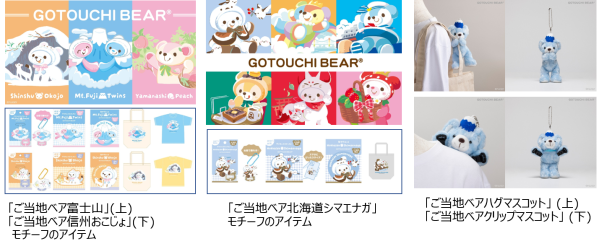 2012年に栃木県名産のイチゴをモチーフにした「栃木ストロベア」を販売し、好評をいただいたのを皮切りに、全47都道府県のご当地ベアが誕生しました。購入されたお客様の旅の思い出として、また、知られていない物産品の発見のきっかけになればとの思いから、その地域の特徴を取り入れることを大事にしています。全国各地の主要な高速道路・空港・鉄道などの交通機関の売店、観光地やテーマパークのお土産店、ホテルなどの宿泊施設等約1000カ所以上で販売し、年間販売数は約30万個となっています。