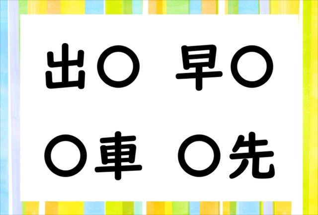 それぞれ異なる2字熟語が4種類並んでいますが、それぞれの○にはある共通する1文字の漢字が入ります。さあ、この○に入るべき漢字は何でしょうか? 色々なパターンを想像して考えてみましょう!