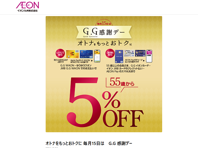 * イオングループ:毎月15日に55歳以上を対象とした「G.G.感謝デー」(5%割引)