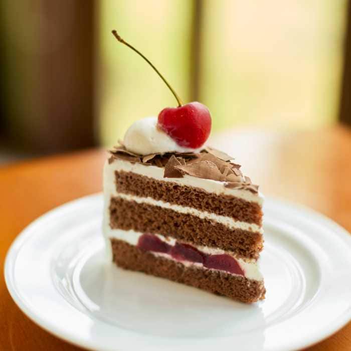 チョコレートとココアパウダーを練り込んだ生地に、山形県産さくらんぼ果汁と生クリームを使ったクリームを重ね、華やかさとコクを両立しました。