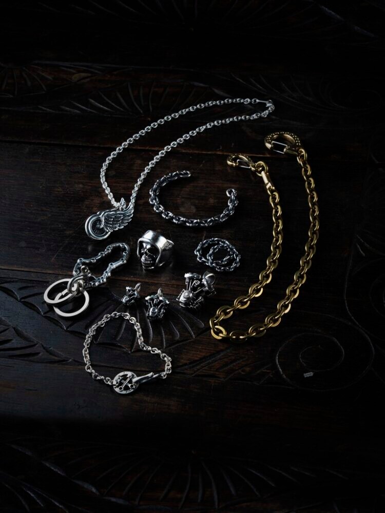 数々の有名ブランドのOEMも手がけてきた腕利きのシルバー職人である馬場大輔氏による実力派ブランド。ハーレー初のOHVエンジンである「ナックルヘッド」から、最新の「ミルウォーキーエイト」まで、歴代エンジンをモチーフとしたペンダントトップがフラッグシップとなっているが、さまざまなバイクパーツをモチーフとしたアクセを展開。馬場氏がハーレー乗りだからこそ気づけたアイデアを、高い彫金技術で表現している。パーツを精巧に再現する一方で、そのままの縮率だとファ
