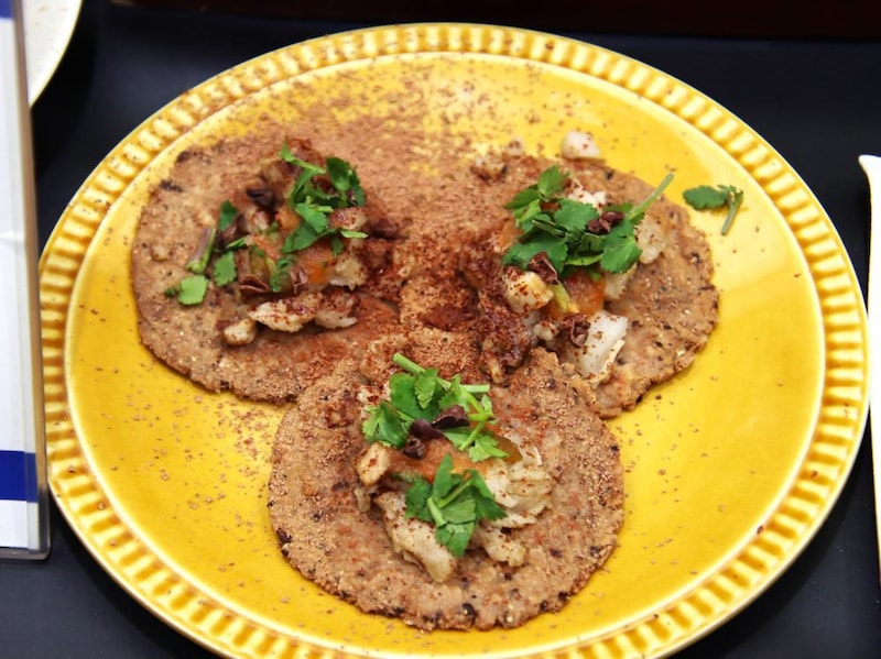 スイーツの食べ歩きで、口が甘くなってきたところで挟みたいのが、メメントモリのタコス「Cacao's Tacos」(1980円)です。