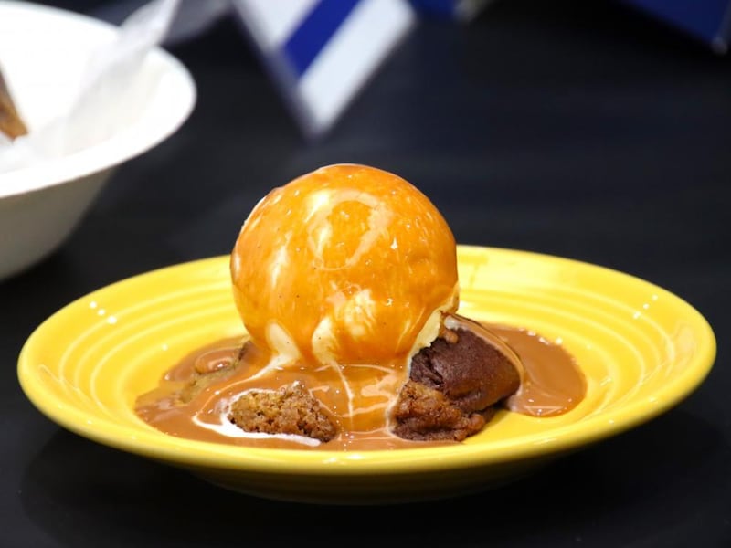 カレーと合わせて注文したい、「ダブルドウクッキーアイス」(1430円)は"いいとこどり"のスイーツです。ガートココアの人気No.1とNo.2のクッキーをハーフハーフに焼き上げ、バニラアイスを重ねています。