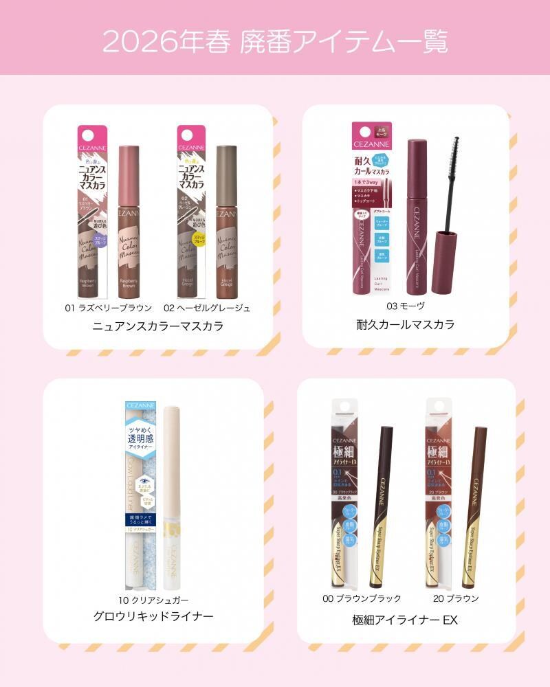 2026年2月2日、セザンヌの公式Xがこの春に廃盤するアイテムと販売店縮小アイテムを公開しました。