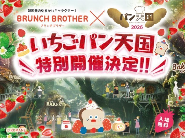 過去には大阪・関西万博や音楽フェス「RADIO CRAZY」でも開催された大人気のグルメイベント「パン天国」が、2026年2月22日(日)・23日(月・祝)の2日間にわたって「あべのキューズモール」で初開催。開業15周年を記念して“いちご”パンにこだわった特別イベントです!