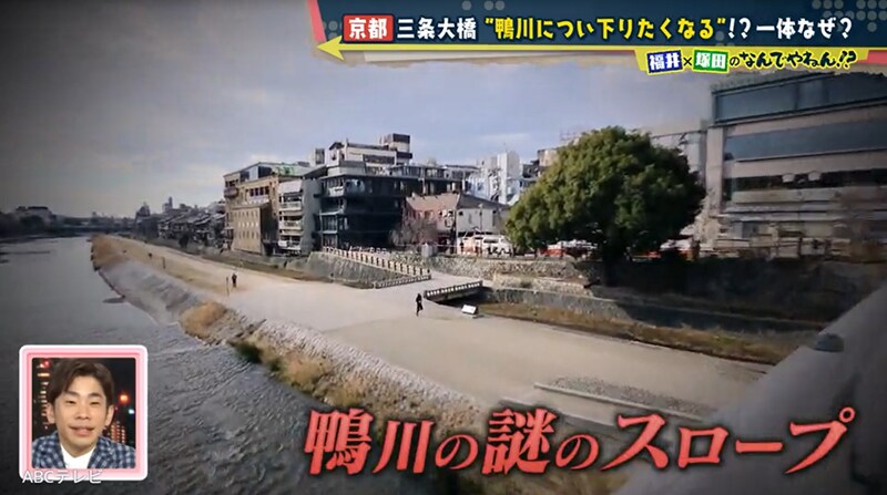 京都の三条大橋には、鴨川につい下りたくなる謎の道(スロープ)がある。実はこのスロープは、京都にとってなくてはならない超重要なものだった! A.B.C-Zの塚田僚一とABCテレビの福井治人アナウンサーは、協力して調査に挑むも、途中で珍しく口論になり……!?