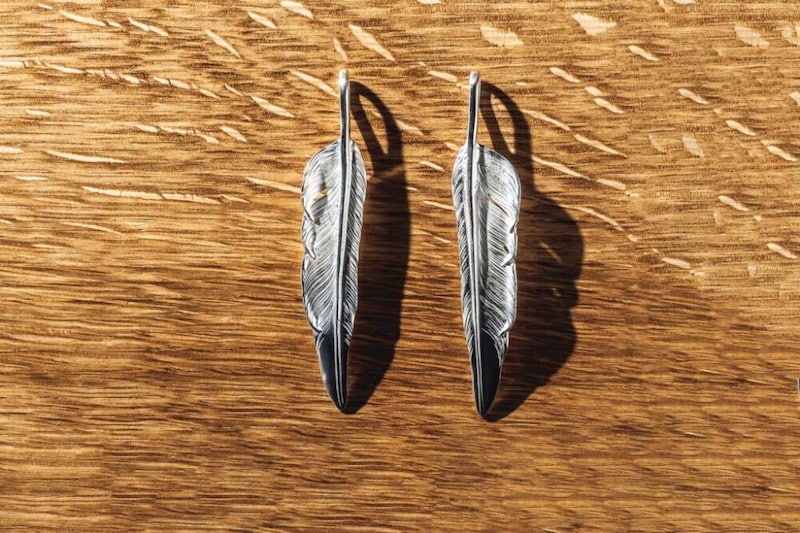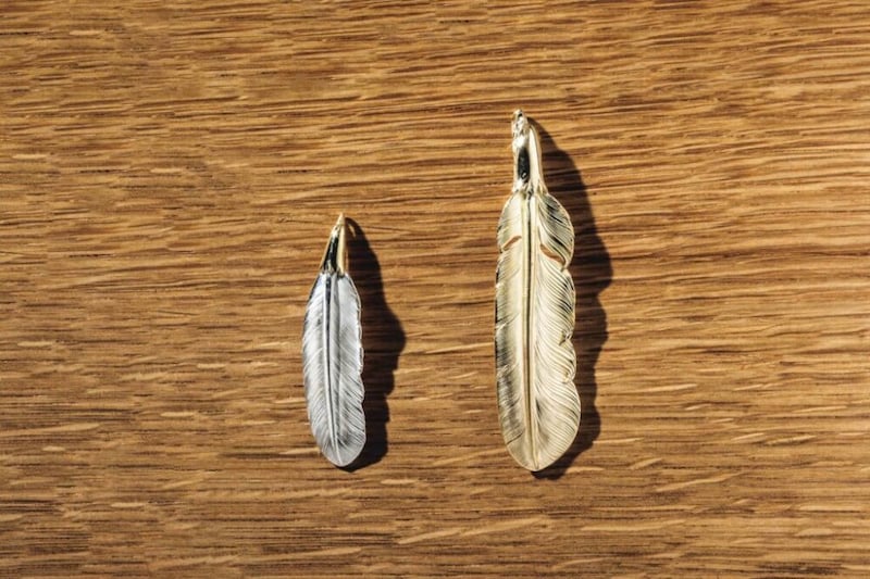 イヌワシの左右に1枚づつ生えている通称ナタ羽。17年に発表され、左右のデザインを展開。初列風切羽から次列風切羽に切り替わるもので、先端が鋭いのが特徴である