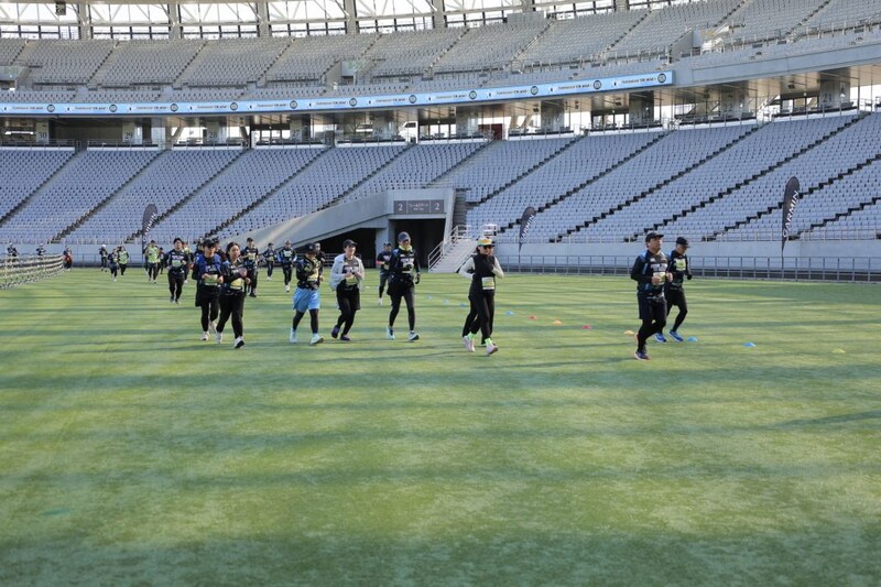 スタジアム内を1周し、そのまま外周部に設けられたコース(2.5km)を4周する内容となっており、久しく運動をしていない筆者は制限時間(90分)以内の完走を目指して走りました。