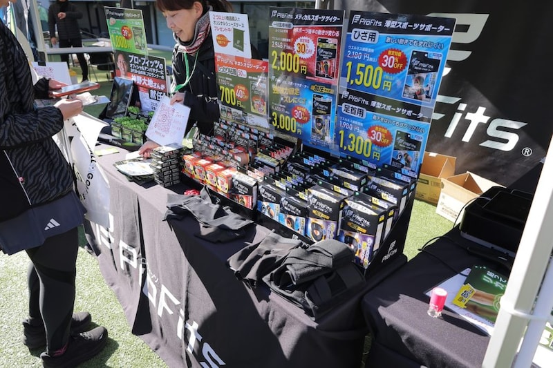 他にも、お得なスポーツアイテムなどの販売・体験や、協賛企業のサービス展示ブースなどが並び、お祭りの露天を巡るような感覚で、参加者たちはスタートまでの時間を楽しんでいました。
