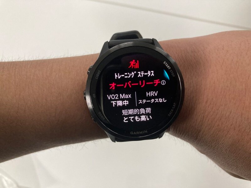 走行後にはトレーニングステータスを確認することも可能となっており、本イベント後に確認すると「オーバーリーチ」と表示。