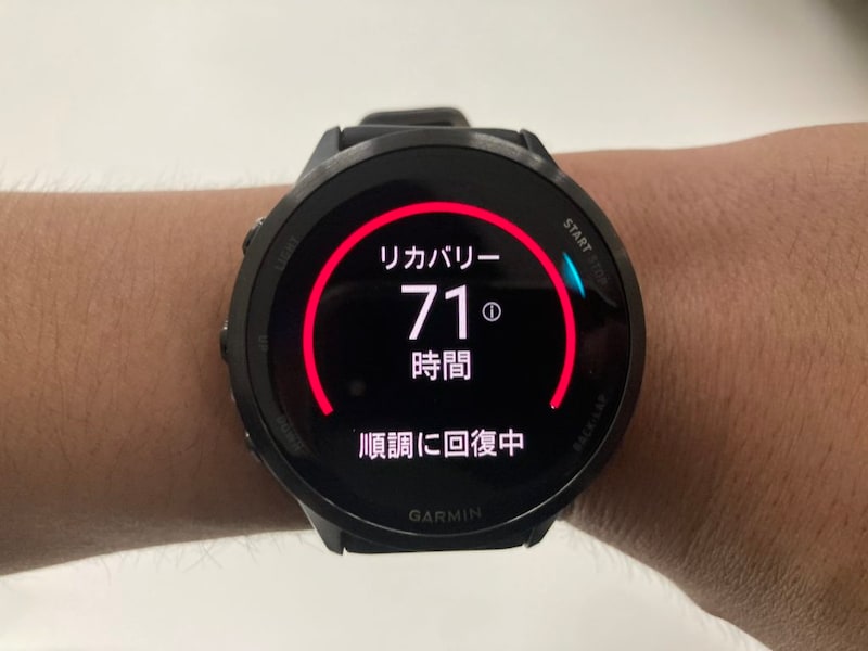 さらに運動後のリカバリータイムまで教えてくれるのですが、10km走行後の筆者のリカバリータイムはなんと72時間という表示に。