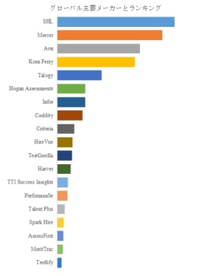 LP Informationのトップ企業研究センターによると、才能評価ツールの世界的な主要製造業者には、SHL、Mercer、Aon、Korn Ferry、Talogy、Hogan Assessments、Codility、Infor、Criteria、HireVueなどが含まれている。2024年、世界のトップ10企業は売上の観点から約55.0%の市場シェアを持っていた。