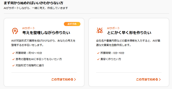 ■ 新しく選べる「4つの進め方」1. 考えを整理しながら作りたい(おすすめ)
