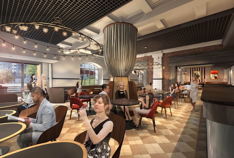 内装は、もともとあった円柱を活かしたシンボリックなベンチ、現代美術家・長島伊織さんの作品を引き立てるライティング、選び抜かれた家具やインテリアが調和。ネオルネッサンス様式を基調とした重要文化財の荘厳な意匠を尊重しながら、現代の感性を融合させています。歴史ある建築と現代アートが響き合い、まるで100年の時空を旅するかのような、洗練と寛ぎが共存する社交場となっています。