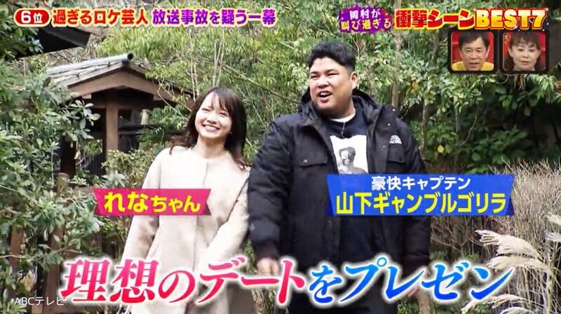 山下と兵庫県神戸市で1日デートをしてくれたのは、笑顔がまぶしい美女・れなちゃんだ。山下は、寒がるれなちゃんに自分のマフラーを巻いてあげて「似合ってるやん」と褒めたり、彼女から「あーん」で食べさせてもらったりとイチャイチャ。れなちゃんにデレデレな山下を、ナインティナインの岡村隆史とタレントのなるみは、「なんちゅう顔や!」「全然芸人の顔ちゃうかったな!」とスタジオでイジりまくった。