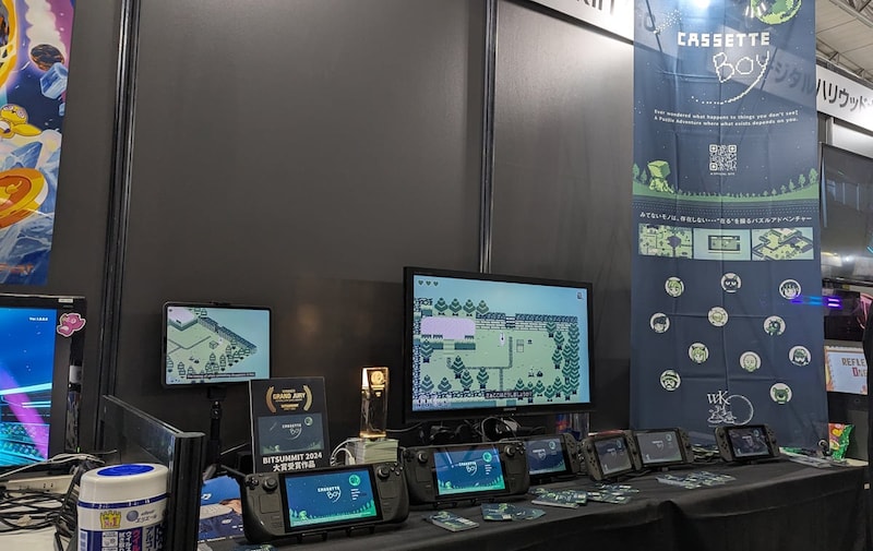 2024年のBitSummitアワード大賞受賞作品「CASSETTE BOY」は、Forever Entertainmentのパブリッシュにより、Xbox Series|ONE、PlayStation 4/5、Nintendo Switch(北米・欧州)のプラットフォームでの配信が決定。開発元でSteam版、国内向けNintendo Switch版のパブリッシュを担当するWonderland Kazakiriブースで出展された他、Forever Entertainmentブースでも出展されていました。