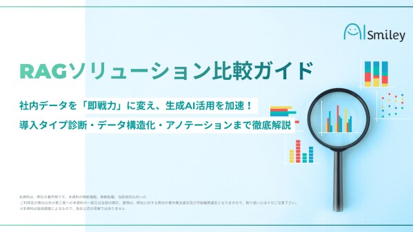 国内最大級のAIポータルメディア「AIsmiley」を運営する株式会社アイスマイリー(東京都渋谷区、代表取締役:板羽 晃司)は、RAGサービスの比較から導入タイプ診断、回答精度の向上やアノテーションについて解説した資料「RAGソリューション比較ガイド」を2026年2月5日(木)に公開しました。