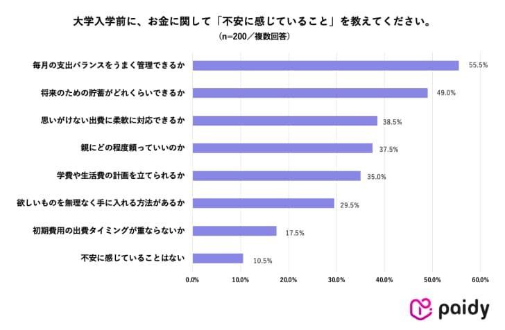 さらに、新大学生のお金に関する不安として最も多かったのが「毎月の支出管理」。