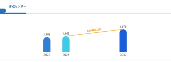 Global Reports調査チームの最新レポート「グローバル多点センサー市場規模、主要企業シェア、ランキング分析レポート【2026年版】」によると、2026年の1168百万米ドルから2032年には1675百万米ドルに成長し、2026年から2032年の間にCAGRは6.2%になると予測されています。