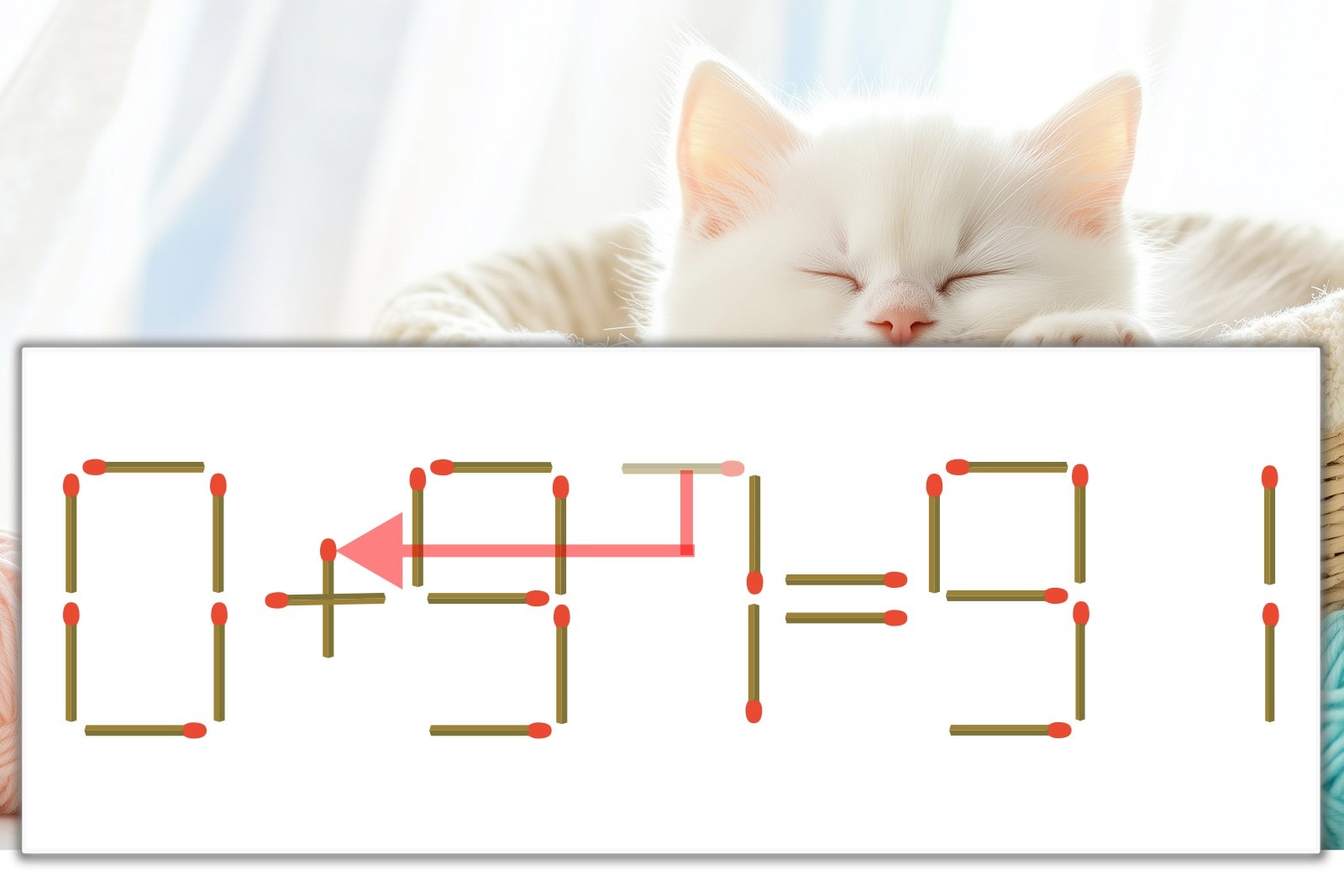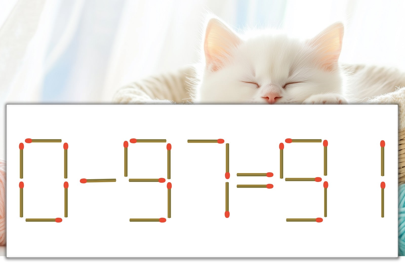 「7」を別の数字に変化させると答えが導き出せます。「7」のマッチ棒を1本移動して、「-」を「+」にしてみましょう。すると、「0+91=91」が成立します。