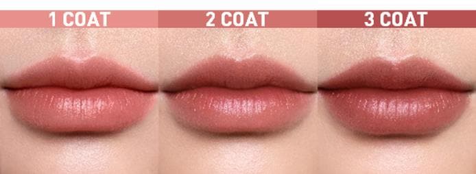 水分をたっぷり含んだカラーは、唇に溶け込むようになじみ、重ね塗りで自分好みの発色に調整できます。