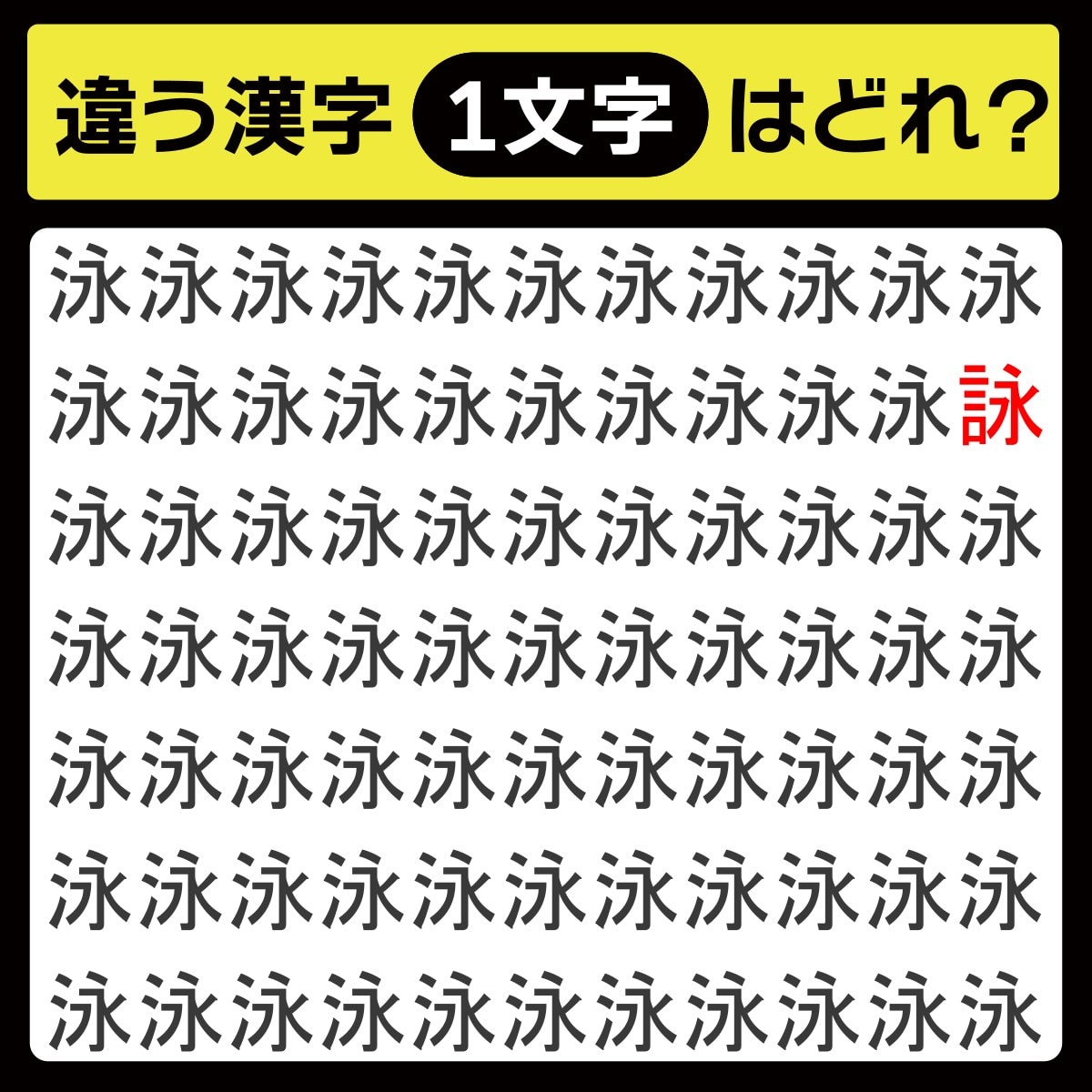 違う漢字は、上から2行目、右から1番目の文字でした!